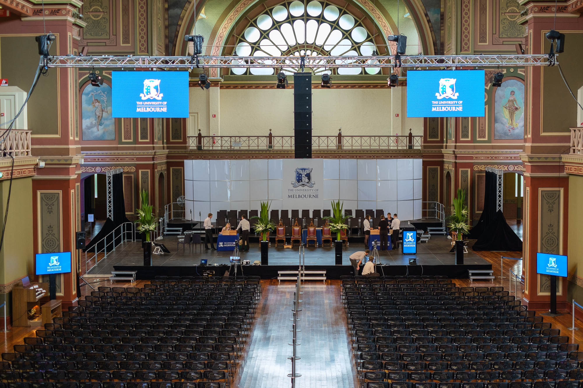 The University of Melbourne hosted seven days of graduation ceremonies at Melbourne’s heritage-listed Royal Exhibition Building, with up to 3,000 guests per session. Microhire was engaged to deliver consistent, high-quality production across ten ceremonies while respecting the venue’s unique architecture and layout.