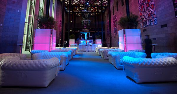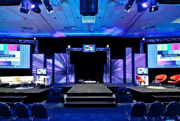 - LED displays and stage elements that support branded visuals and remote speaker integration