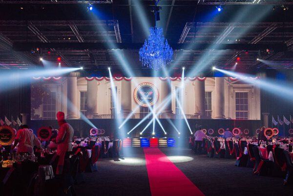 - LED displays and stage elements that support branded visuals and remote speaker integration