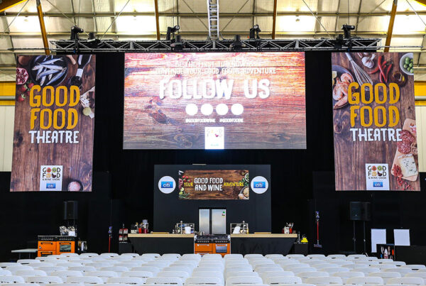 Purpose-built venues are increasingly designed with hybrid delivery in mind. At the Adelaide Marriott Hotel, integrated AV infrastructure provided by Microhire gives event organisers access to: